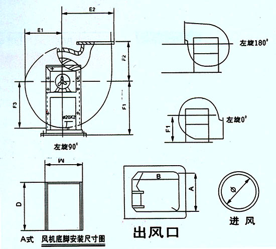SY-731-Ⅱ型PP離心風機為全塑無鋼支座,大機型為8A號,內機出口360°任意轉向,進出風口按照SY-731-Ⅰ型表,安裝尺寸由我廠另提供。