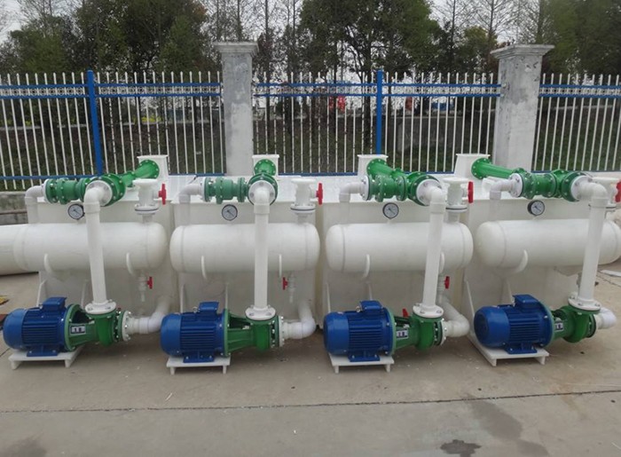 聚丙烯PP真空機(jī)組體積小,結(jié)構(gòu)緊可移動(dòng),噪音低,能耗低便于綜合利用。水汽串聯(lián)噴射真空機(jī)組,耗氣量小可獲得更高的真空度,工作穩(wěn)定,使用方便。在安裝使用前,須仔細(xì)檢查各部位緊固件是否松動(dòng),若有松動(dòng)須校正擰緊。開(kāi)機(jī)前水池須加滿水,打開(kāi)泵進(jìn)口閥,嚴(yán)禁脫水空轉(zhuǎn)及反轉(zhuǎn),以防止損壞機(jī)封和泵。停機(jī)前先放空或真空度降至0.092Mpa以下,然后停機(jī)以防真空度過(guò)高,倒吸易損壞止回閥,(如止回閥失靈,請(qǐng)打開(kāi)止回閥蓋,清除雜物)。